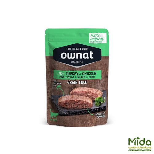 Alimento Húmedo OWNAT Wetline Pouch Turkey & Chicken para Gatos
