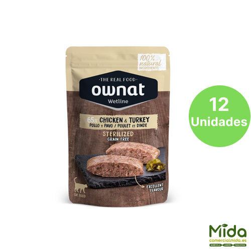 Alimento Húmedo OWNAT Wetline Pouch Sterilized Chicken & Turkey para Gatos