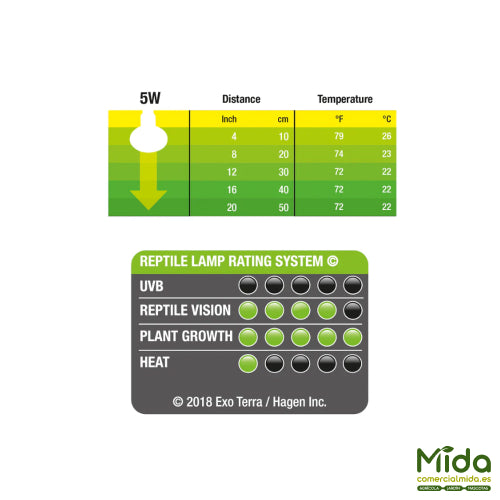 • Altos niveles de luz visible para terrarios pequeños.