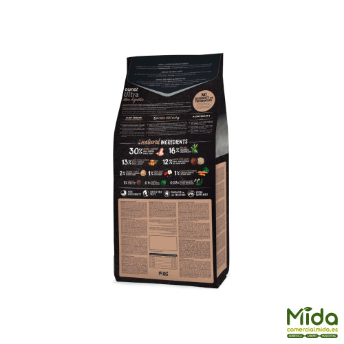 Das füttere Ultra Medium Light von Ownat ist ein vollwertiges und nahrhaftes Trockenfutter speziell formuliert für Hunde mit a geringes Maß an körperlicher Aktivität oder mit der Tendenz dazu Übergewicht . Die Zutaten des Rezepts wurden sorgfältig ausgewählt und sehr langsam bei niedriger Temperatur gegart um es zu erhalten höchste Nährstoffqualität . Das Putenfleisch liefert wichtige Nährstoffe für Erhaltung des Knochen- und Gelenksystems r, Erbsen und Hülsenfrüchte enthalten Mineralien und pflanzliche Vitamine, die für die Ernährung unerlässlich sind Muskelkraft , Lachsöl verbessert Elastizität und Glanz von Haut und Haar und Vollkornprodukte erleichtern die Verdauungsprozess . Der Fettgehalt ist sehr gering und dieses Futter ist ideal für Idealgewicht wiedererlangen und halten . Das Verhältnis zwischen Proteinen und Mineralstoffen ist optimal und sorgt für eine gute Pflege und Pflege Muskeltonus . Die Größe der Kroketten ist dem Kiefer der Tiere angepasst Überanstrengung vermeiden oder Schwierigkeiten beim Essen.