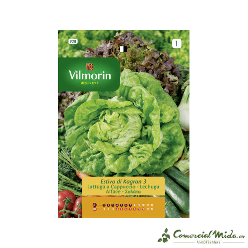 Das Kagraner Sommersalat Samen von Vilmorin sind Samen einer Sorte sehr hitzebeständig und ideal für Sommer-Herbst-Ernte . Es wird empfohlen gieße es regelmäßig um zu verhindern, dass die Blume klettert und verlängert die Erntezeit . Diese Salatsorte hat a schnelles Wachstum und Sie können mit dem Sammeln beginnen 45 Tage nach der Aussaat . Die Form der Knospe ist sehr voluminös und fest , mit dicke, lockige Blätter Farbe intensives Grün und köstlicher Geschmack .