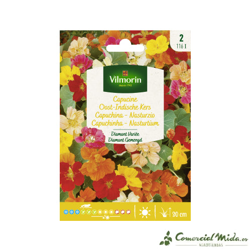 Las mejores semillas de Flores Enanas de Vilmorin para cultivar Capuchina Diamante Variada.